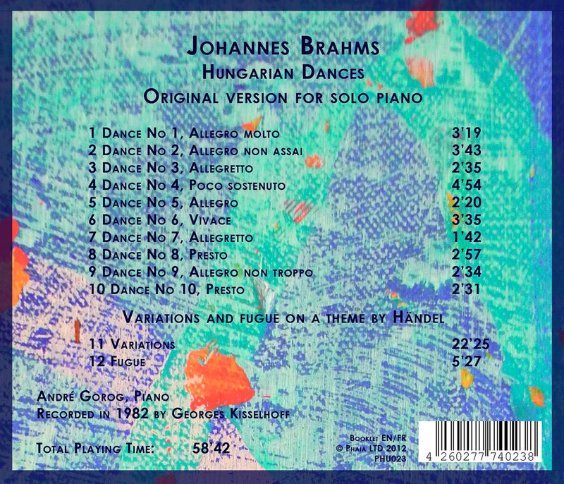 Phaia MusicBrahms: Hungarian Dances - Variations and Fugue on a ThemeBrahms' arrangement of the first ten Hungarian Dances for solo piano is surprisingly far less known than the popular orchestrations. Andre Gorog...