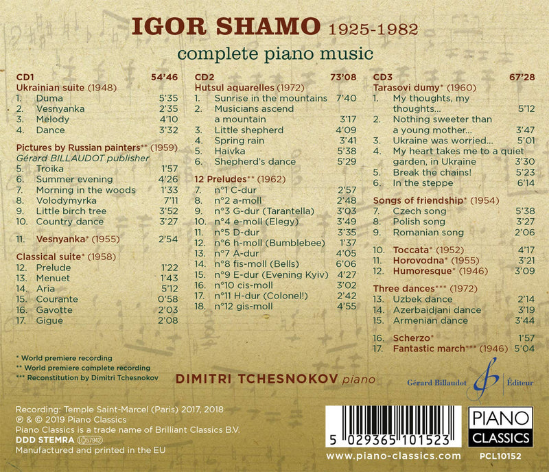 On SalePiano ClassicsShamo: Complete Piano MusicBorn in Kiev in 1925, Igor Shamo studied with the elder statesman of modern Ukrainian art music, Boris Lyatoshinsky. Schumann, Mussorgsky and...