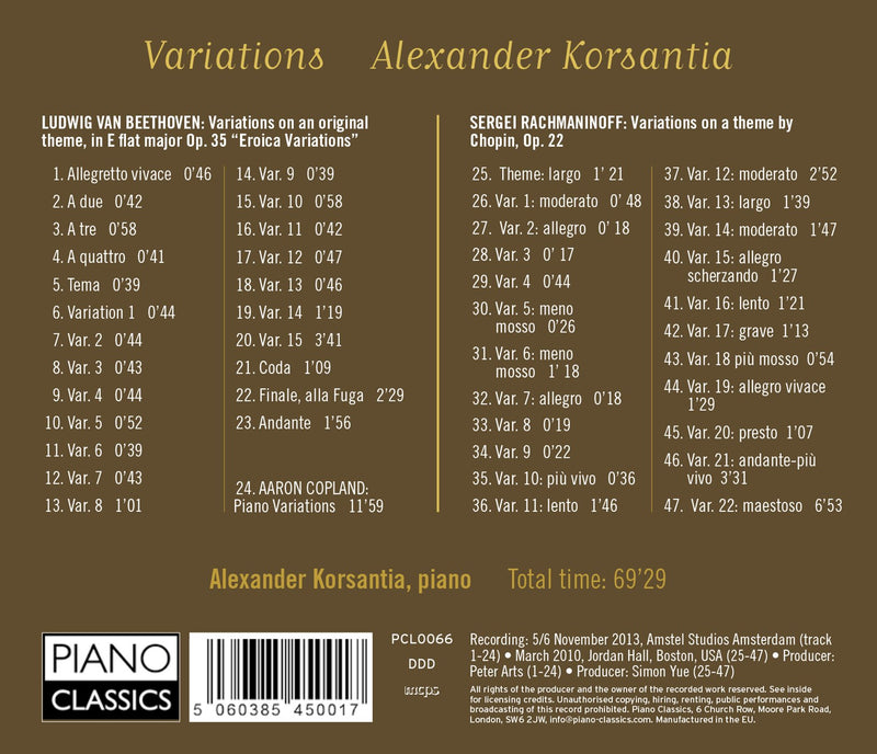 •A fascinating programme of three variations cycles from different style periods. The Beethoven Eroica variations, The Piano Variations by Aaron Copland and...