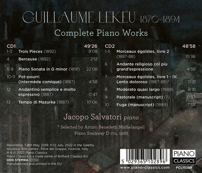 The most complete set of Lekeu’s piano music ever recorded, demonstrating the full range of genius cut off in his prime. After...