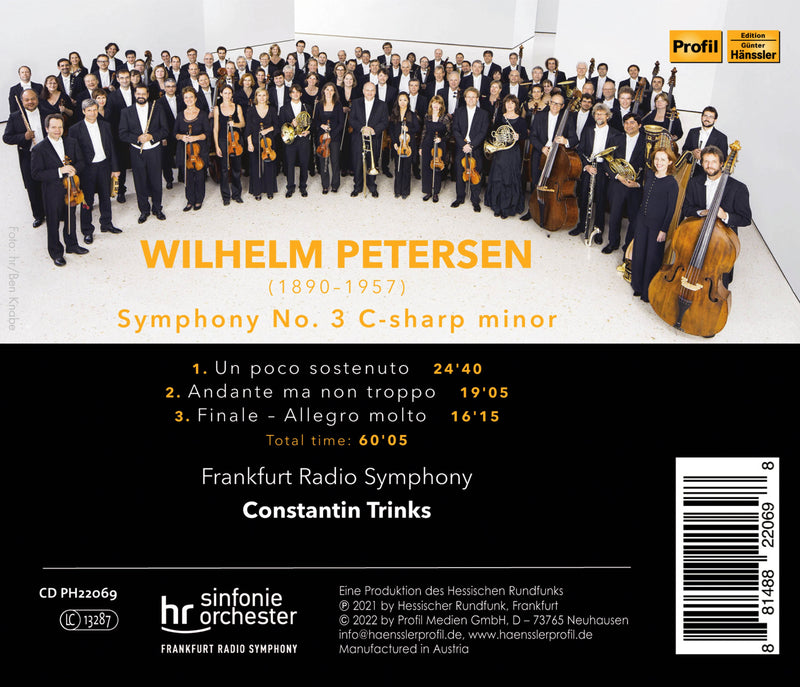 Petersen's Third Symphony in C sharp minor received its premiere in 1934 under the baton of Karl Friderich in Darmstadt; a further...
