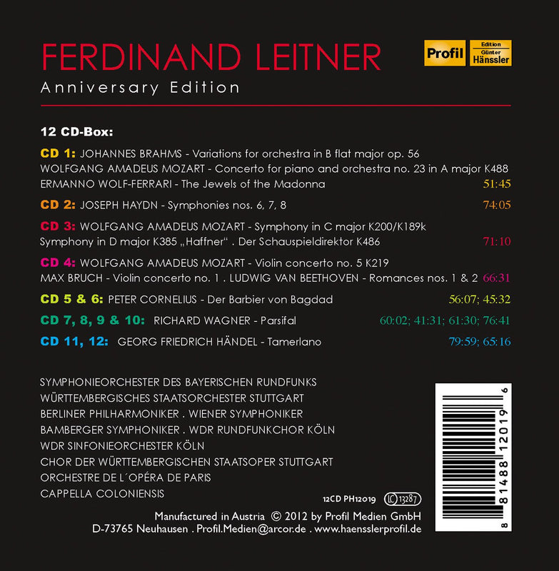 ProfilFerdinand Leitner Anniversary EditionTo mark the 100th anniversary of the birth of noted German conductor Ferdinand Leitner, Profil Edition: Gunter Haenssler presents this wonderful 12...
