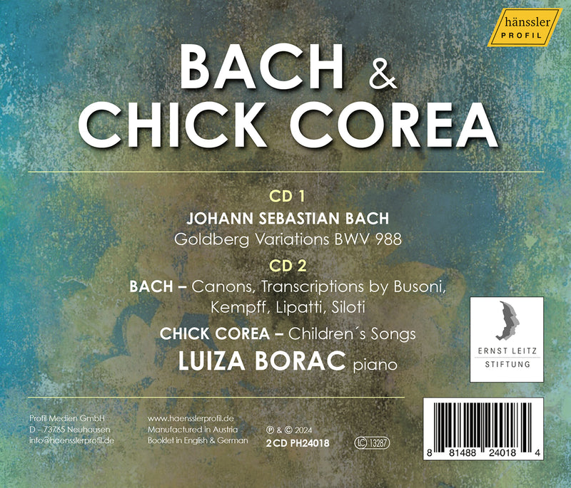 Pianist Luiza Borac plays Bach's Goldberg Variations and Canons, transcriptions of Bach works by Lipatti, Busoni, Kempff, and Siloti, concluding with Chick...
