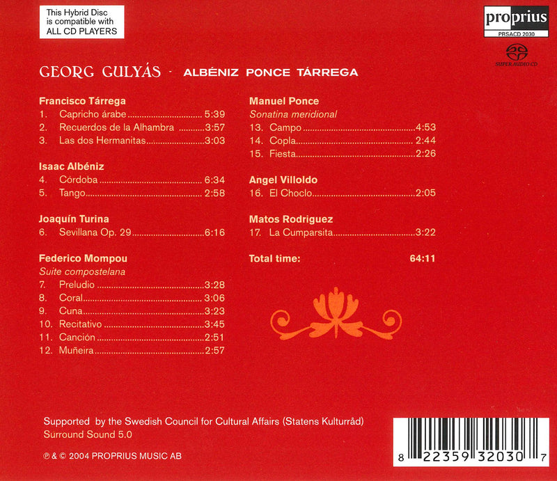 (SACD-HYBRID) Georg Gulyas' second CD on Proprius also consists of works by Spanish and Latin American composers. The first three works are...