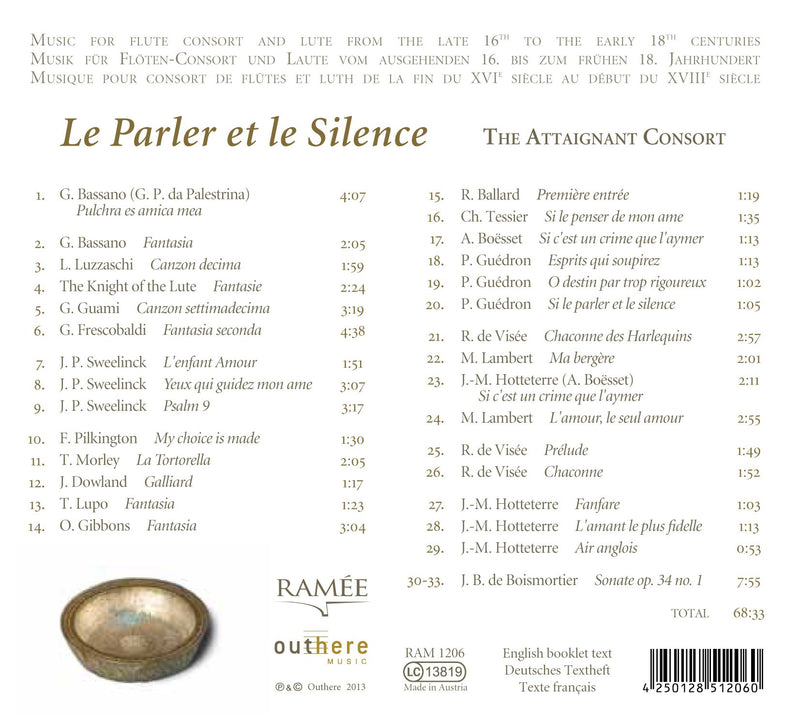 LE PARLER ET LE SILENCE: Music for Flute Consort and Lute from the Late 16th to the Early 18th Centuries • Attaignant...