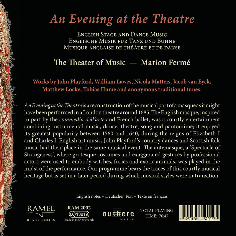 An Evening at the Theatre is a reconstruction of the musical part of a masque as it might have been performed in...