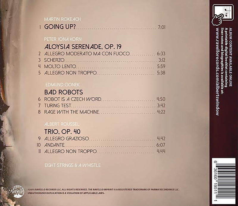 Ravello RecordsAlbert's WindowSince 1998, the compelling trio Eight Strings and a Whistle has been committed to presenting works and expanding the repertoire for the...