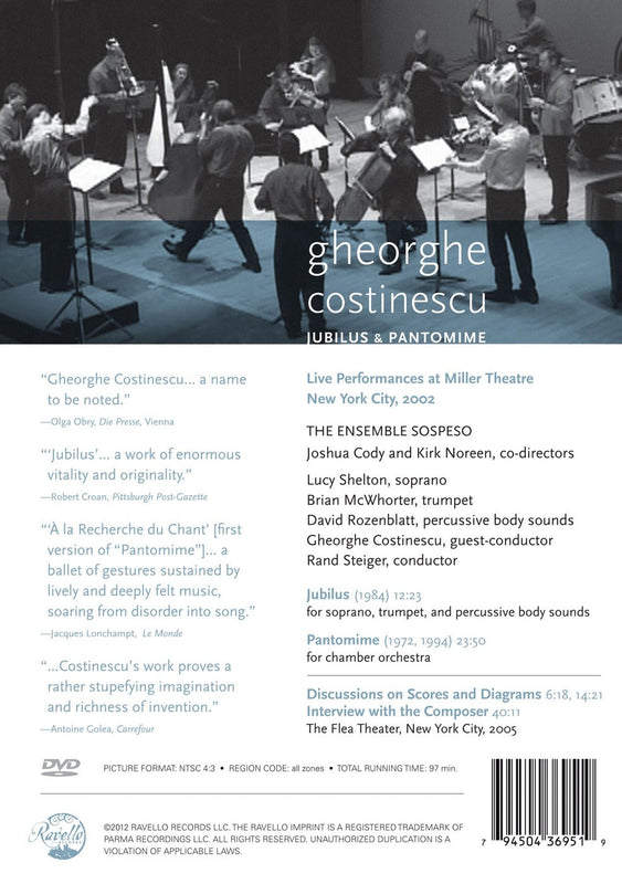 Ravello RecordsJUBILUS & PANTOMIMEJubilus & Pantomime is a full-length performance DVD. Jubilus, written for soprano, trumpet, and percussion is an expression of physical and spiritual...