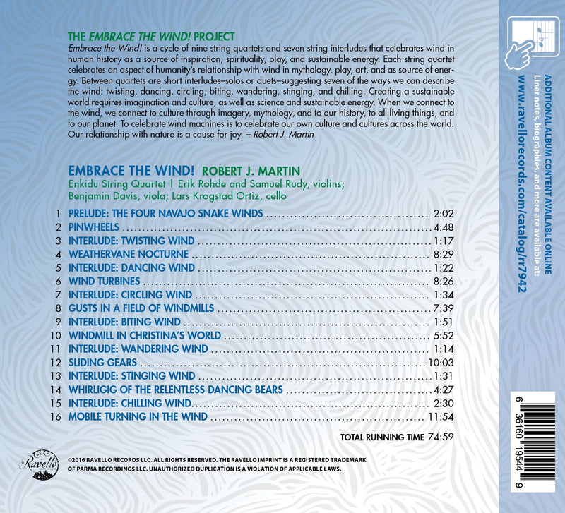 Ravello RecordsRobert J. Martin: Embrace the Wind!With his Ravello release Embrace the Wind, composer Robert J. Martin communicates the wonder that humanity has for wind through a cycle...