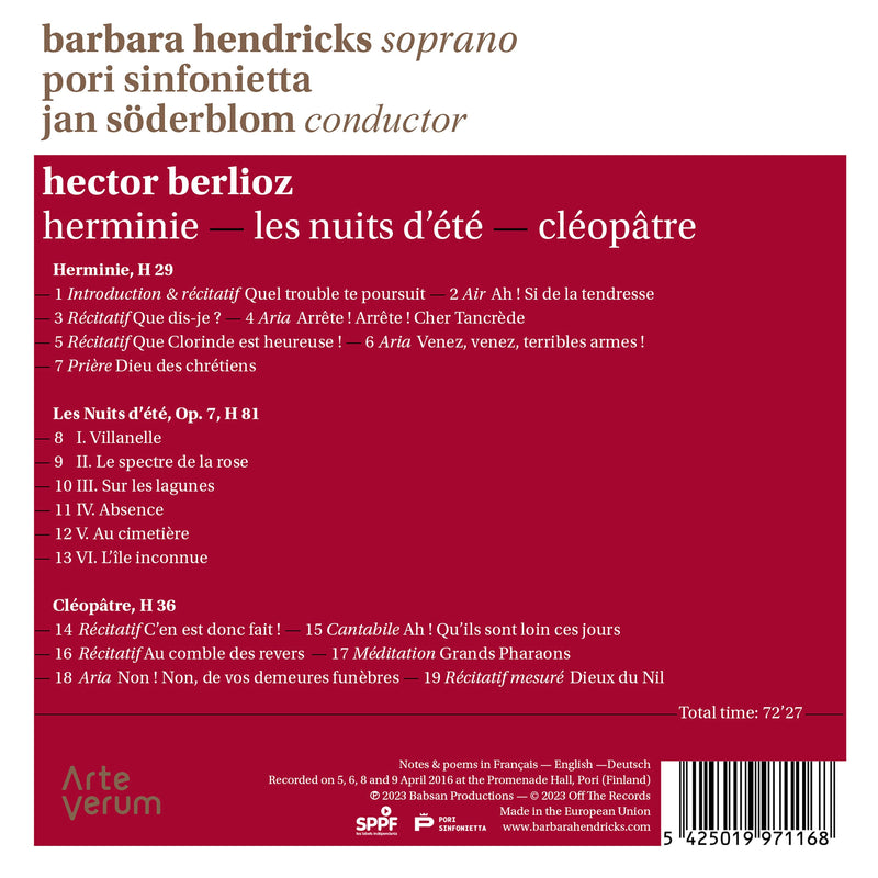 Arte VerumBerlioz: Les Nuits d'été; Cléopâtre / Barbara Hendricks, Söderblom, Pori Sinfonietta