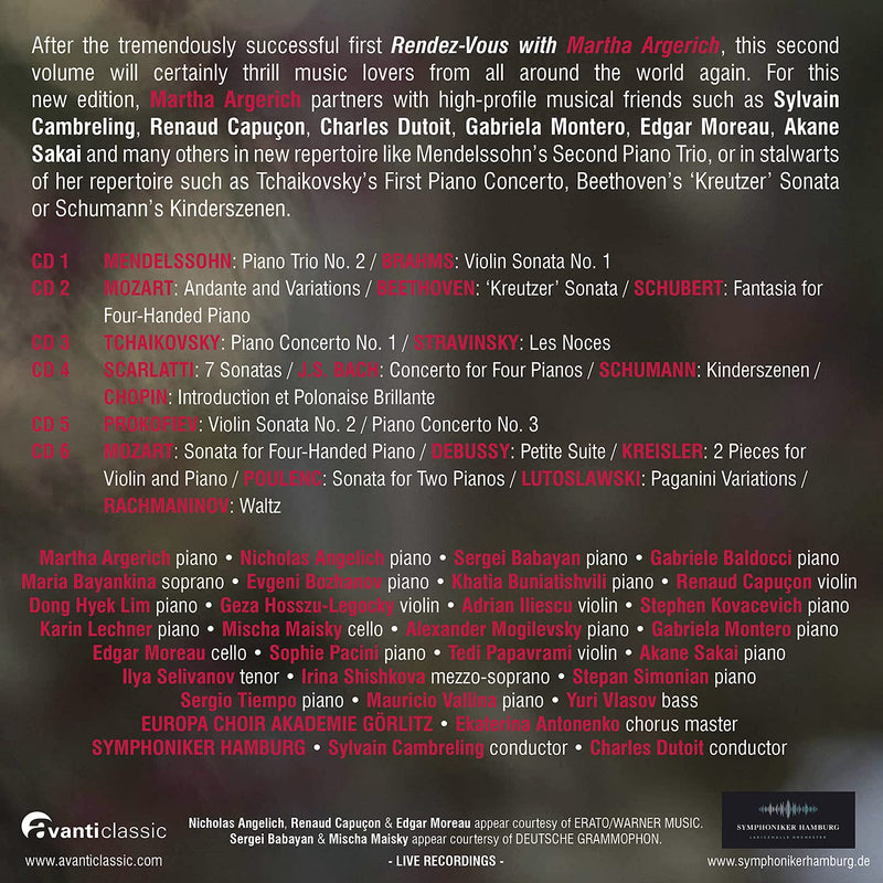After the tremendously successful first Rendez-Vous with Martha Argerich, this second volume will certainly thrill music lovers from all around the world...