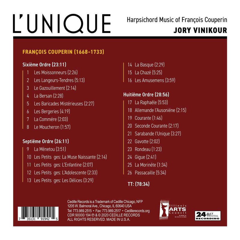 On SaleCedilleL'Unique - Harpsichord Music of Francois Couperin / Vinikour