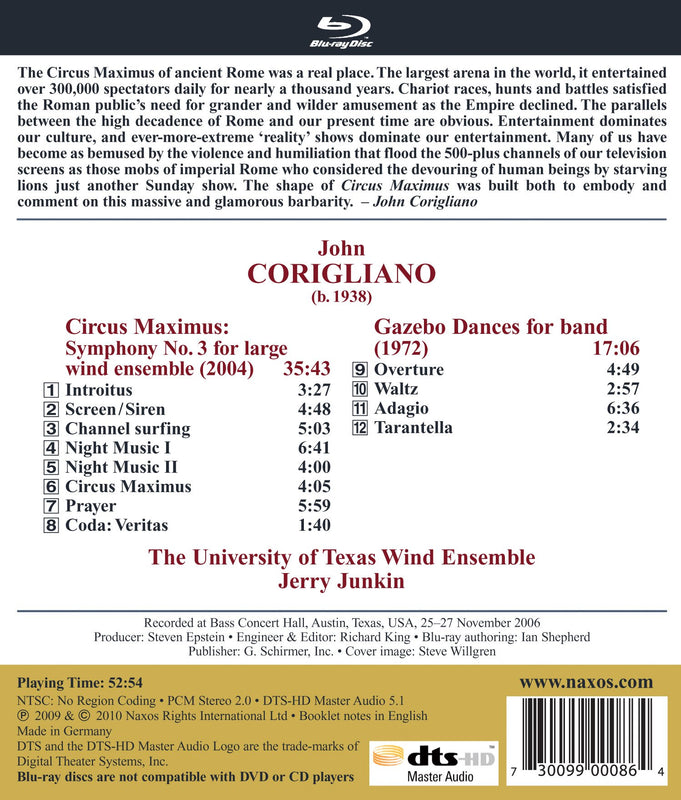 On SaleNaxos AudioVisualCorigliano: Circus Maximus / Junkin, University Of Texas Wind Ensemble [Blu-ray Audio]