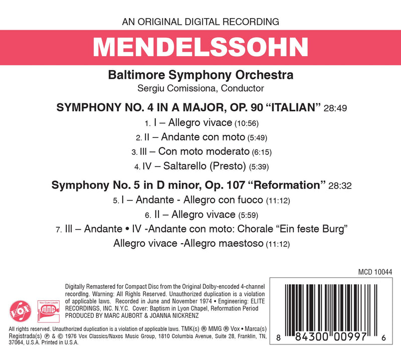 VoxMendelssohn: Symphonies Nos. 4 & 5 / Comissiona, Baltimore Symphony