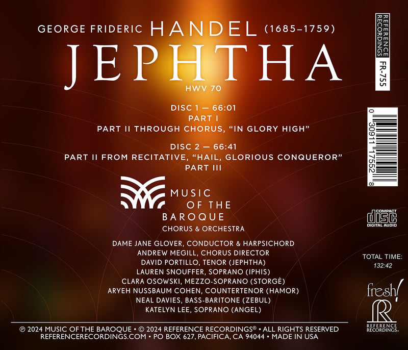 On SaleReference RecordingsHandel: Jephtha / Glover, Music of the Baroque - Chorus & OrchestraThe great baroque composer George Frideric Handel’s final masterpiece!Recorded live in September 2022 by multi-GRAMMY®-award winning engineer Christopher Willis, JEPHTHA is performed...