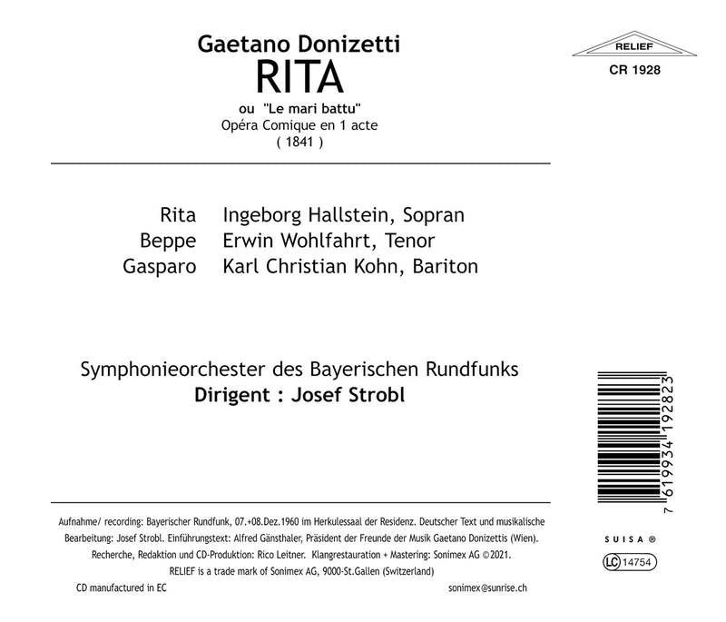 RELIEF presents here for the first time on album the Bavarian Radio recording of Donizetti's cheerful one-act opera Rita (in German) from...