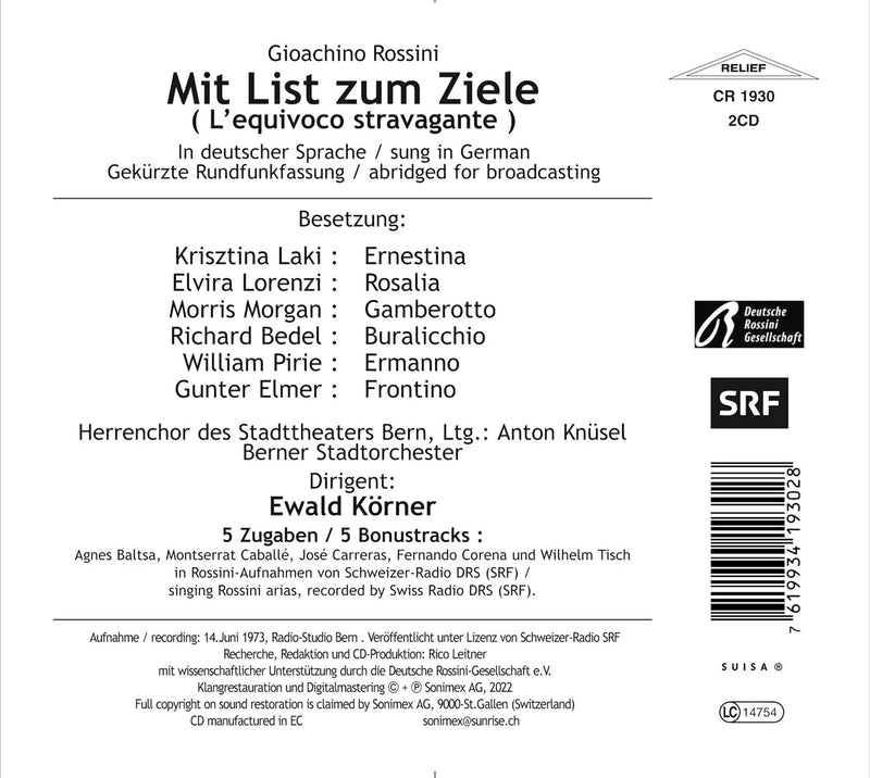 ReliefRossini: Mit List zum Ziele (L'equivoco stravagante in German) / Laki, Morgan, Bedel, Pirie, Körner, Bern Symphony Orchestra