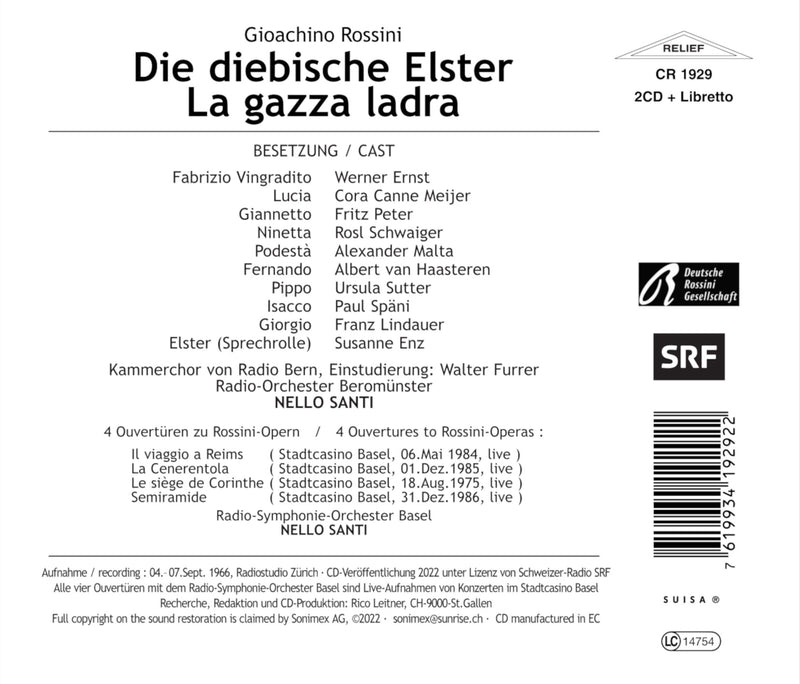 ReliefRossini: The Thieving Magpie in German / Schwaiger, Meijer, Peter, Santi, Bern Radio Orchestra