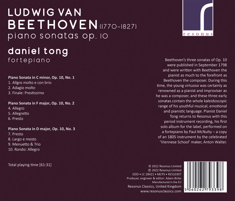 On SaleResonus ClassicsBeethoven: Piano Sonatas, Op. 10 / Daniel Tong