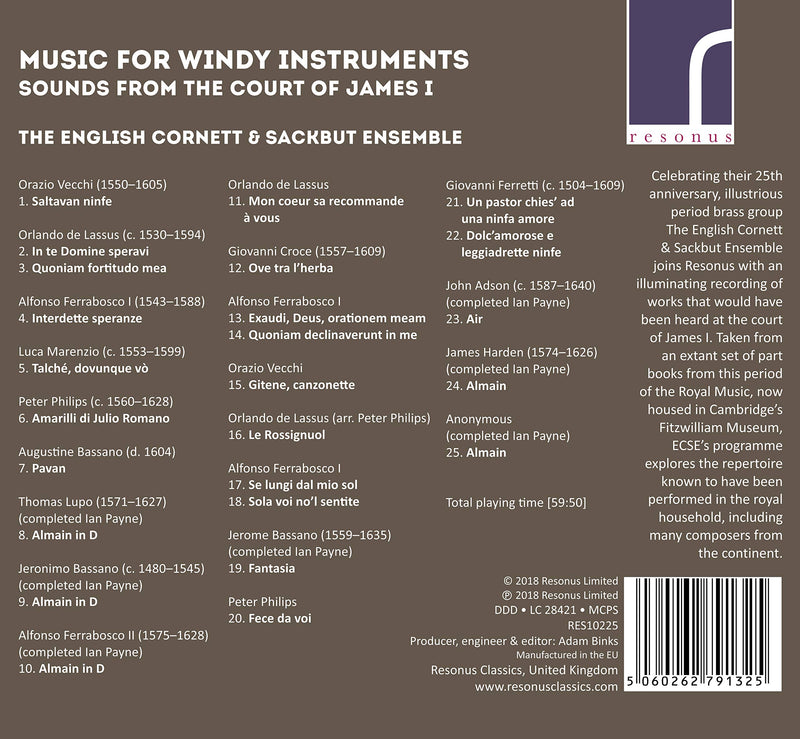 Resonus ClassicsMusic for Windy Instruments / The English Cornett & Sackbut Ensemble