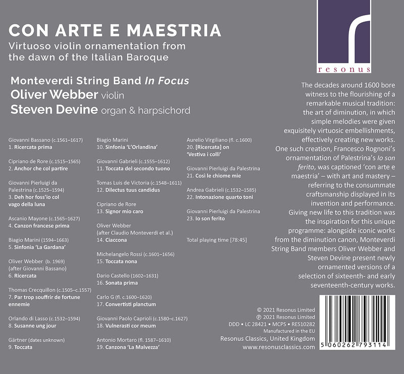 On SaleResonus ClassicsCon Arte E Maestria / Webber, Devine, Monteverdi String Band In Focus