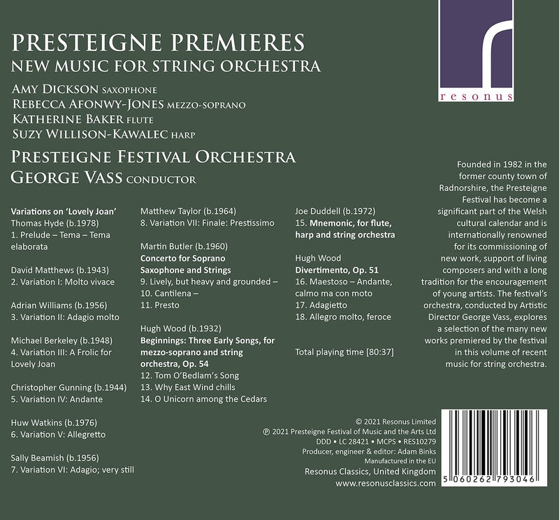On SaleResonus ClassicsPresteigne Premieres: Afonwy-Jones, Baker, Dickson, Willison-Kawalec, Vass, Presteigne Festival Orchestra