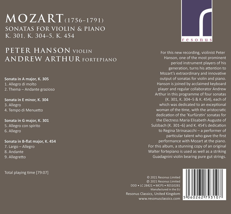 On SaleResonus ClassicsMozart: Sonatas for Violin & Piano / Arthur, Hanson