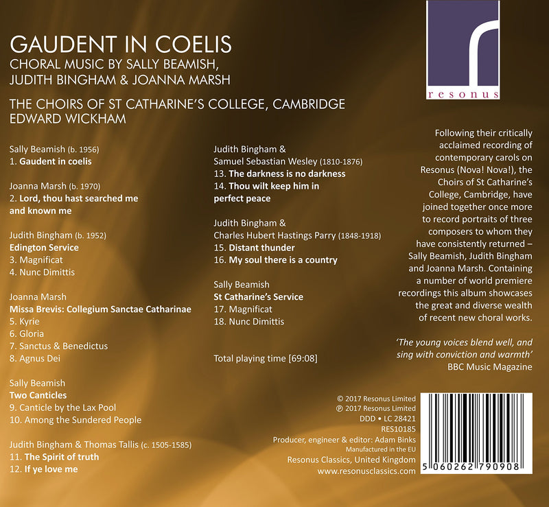 Following their critically acclaimed recording of contemporary carols on Resonus, the Choirs of St. Catharine's College, Cambridge have joined together once more...