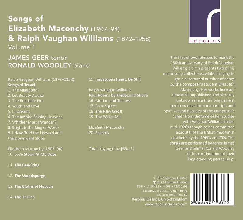 On SaleResonus ClassicsMaconchy & Vaughan Williams: Songs, Vol. 1