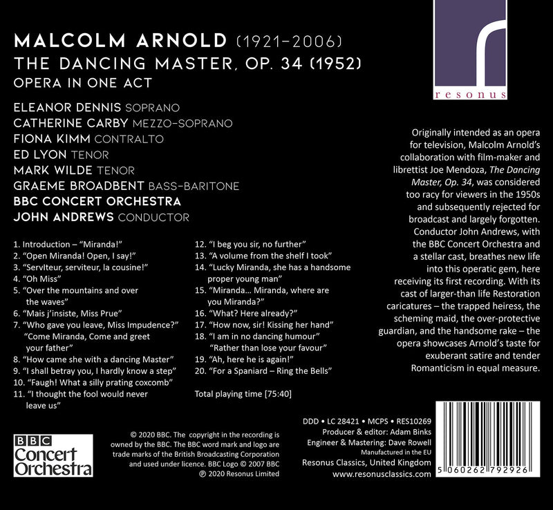 Resonus ClassicsMalcolm Arnold: The Dancing Master, Op. 34 / John Andrews, BBC Concert Orchestra