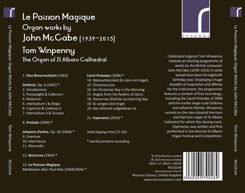 Celebrated organist Tom Winpenny releases an exciting programme of works by the British composer John McCabe (1939-2015) in what would have been...