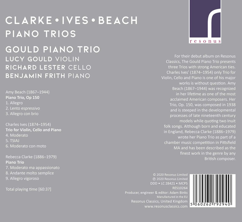 Resonus ClassicsBeach, Clarke & Ives: Trios / Gould Piano Trio