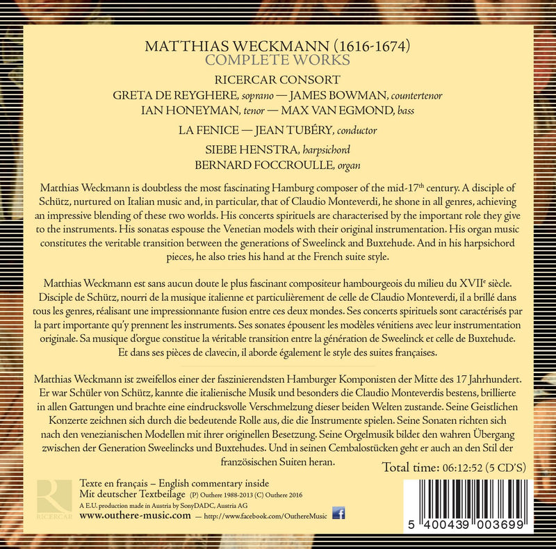 RicercarWeckmann: Complete WorksThis new release presents the complete works of mid-17th century composer Matthias Weckman. This exhaustive 5-disc set is being released in honor...
