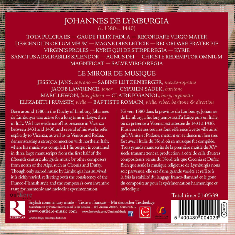 RicercarJohannes de Lymburgia: Gaude felix PaduaBorn around 1380 in the Duchy of Limburg, possibly in the little town of the same name, Johannes de Limburgia was active...
