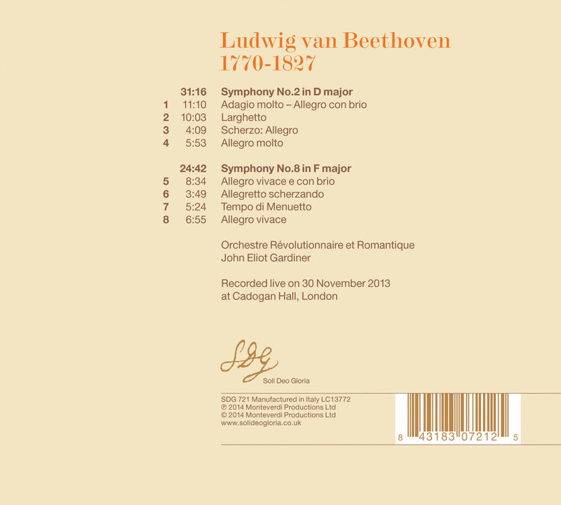 Beethoven: Symphonies 2 & 8 / Gardiner, Orchestre Revolutionnaire et Romantique