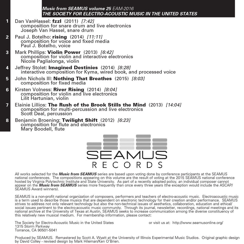 SEAMUS (Society for Electro-Acoustic Music in the United States) releases the next in it's series of back catalogue and new compilations by...