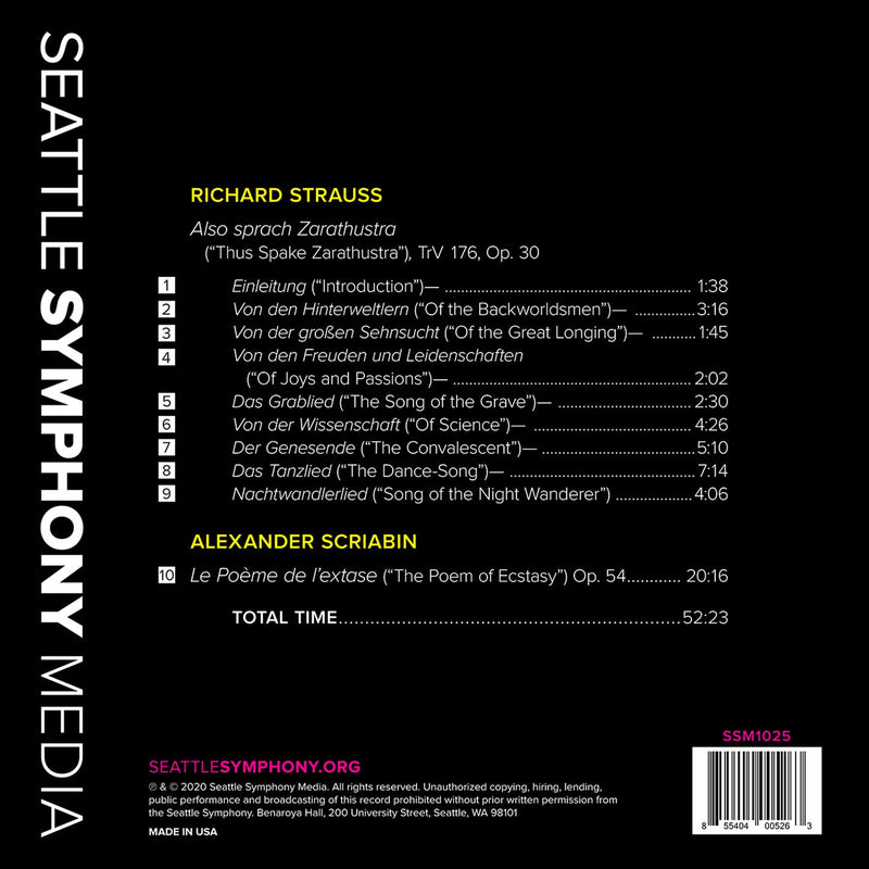 Seattle Symphony MediaStrauss: Also Sprach Zarathustra - Scriabin: The Poem of Ecstasy / Dausgaard, Seattle SymphonyA 2021 GRAMMY Nominee for Best Orchestral Performance! Thomas Dausgaard and the Seattle Symphony release thought-provoking live performances of two extraordinary orchestral...