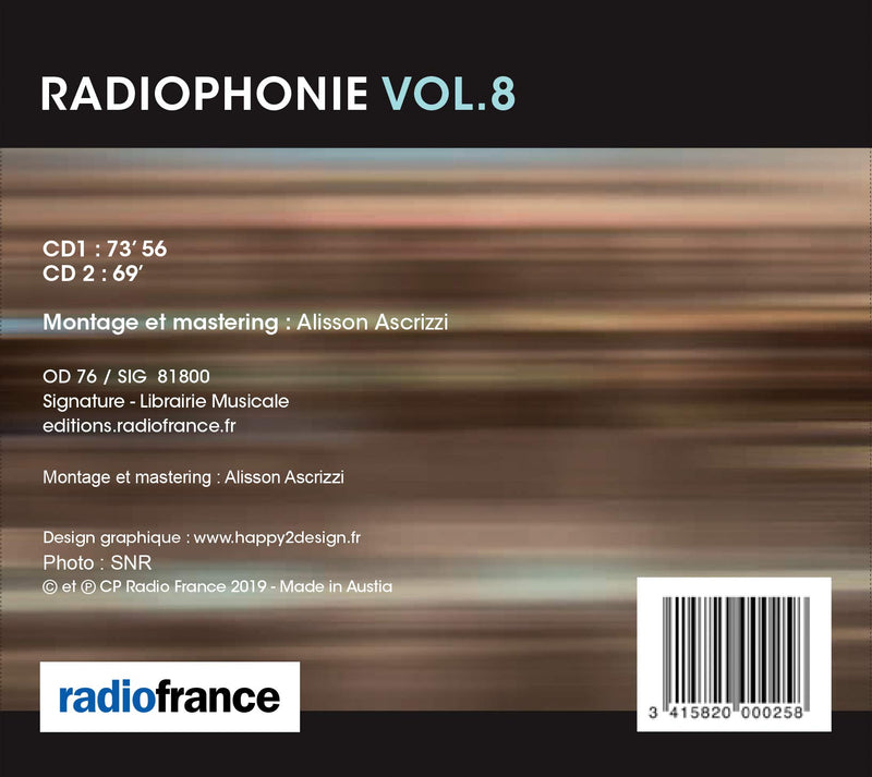 "Radiophonie 8" presents the sound universe of Radio France's channels (France Inter, France Culture, France Bleu and Mouv'). The compositions of Rémy...