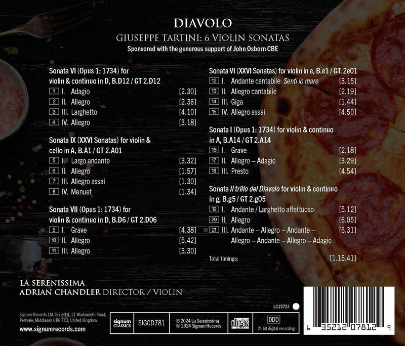 Signum ClassicsTartini: "Diavolo" - 6 Violin Sonatas / Chandler, La SerenissimaThe latest instalment from baroque ensemble La Serenissima. Often compared to Vivaldi, Giuseppe Tartini was a famous virtuoso violinist and highly respected...