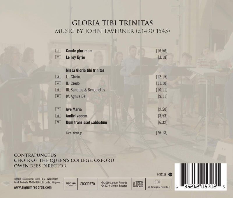 Signum ClassicsGloria Tibi TrinitasOwen Rees leads early-music consort Contrapunctus alongside The Choir of The Queen's College, Oxford in performances of John Taverner's masterwork, the Missa...