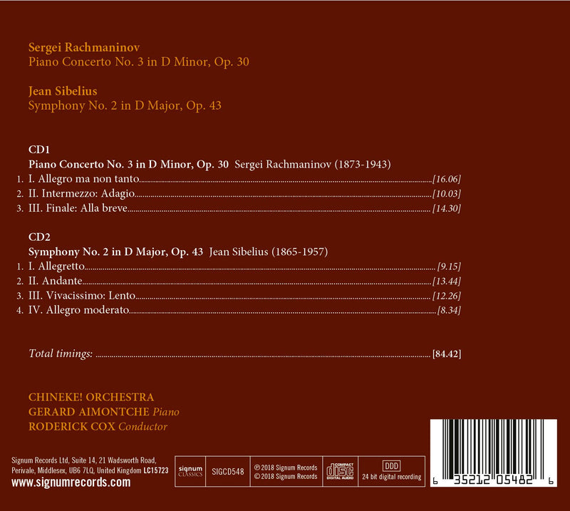 Signum ClassicsRachmaninov: Piano Concerto No. 3 - Sibelius: Symphony No. 2 / Cox, Aimontche, Chineke! Orchestra