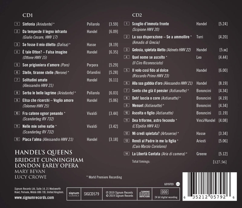 Signum ClassicsHandel's Queens: Cuzzoni & Faustina / Cunningham, Crowe, Bevan, London Early Opera