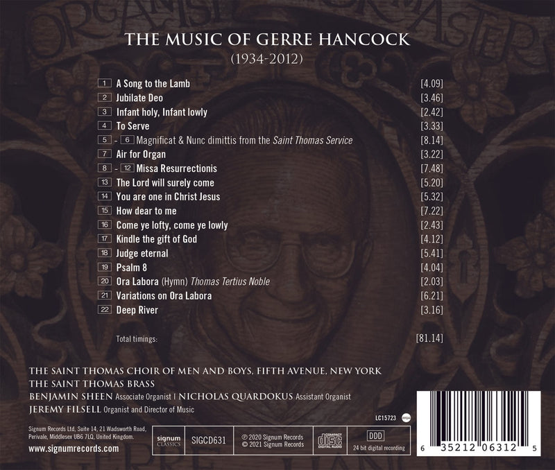 The renowned Saint Thomas Choir of Men and Boys record a fitting tribute to their former Choirmaster and Organist Gerre Hancock (1934-2012)....