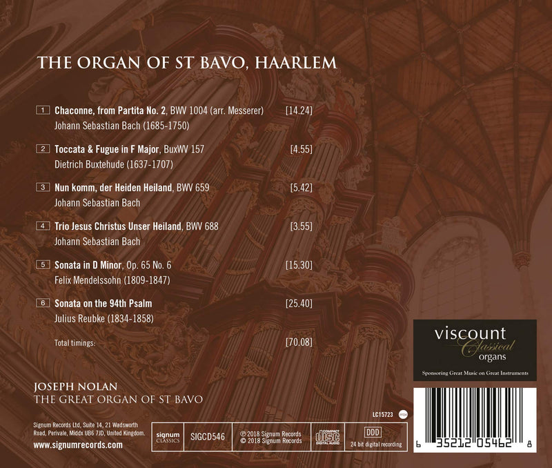 Joseph Nolan marks his 10th release on Signum Classics with a recording on the remarkable 1738 Christian Muller organ of St Bavo...