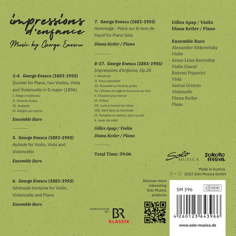 Solo MusicaEnescu: Impressions d'enfance / Ketler, Bezrodny, Apap, Ensemble Raro