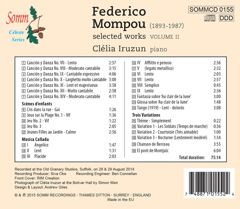 SOMM RecordingsMompou: Selected Works, Vol. 2