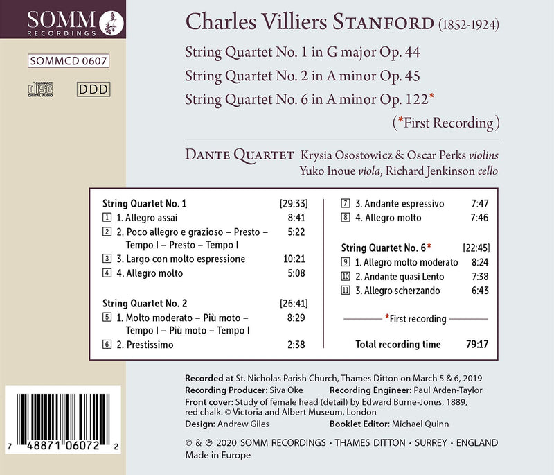 SOMM RecordingsStanford: String Quartets Nos. 1, 2, & 6 / Dante Quartet