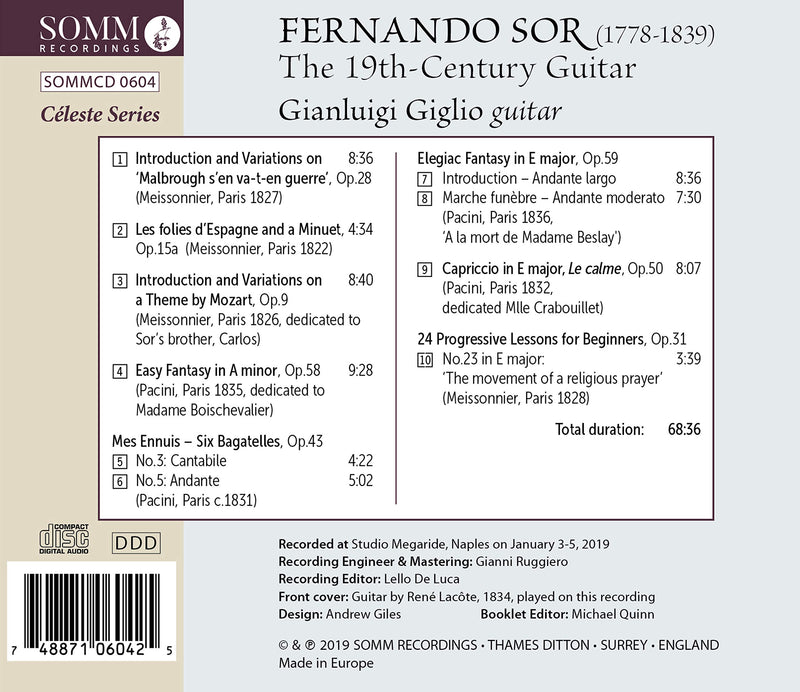 The acclaimed Italian guitarist Gianluigi Giglio makes his debut on SOMM Recordings with The 19th Century Guitar, a scintillating recital of music...