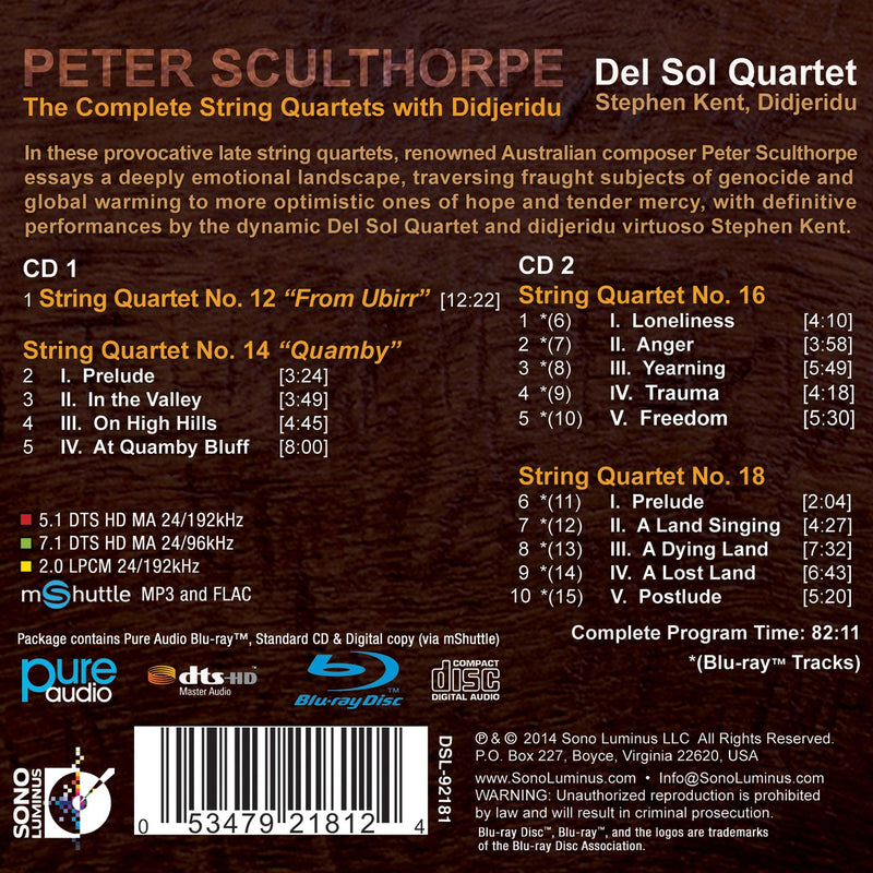 Sono LuminusSculthorpe: Complete String Quartets with Didjeridu / Del Sol Quartet