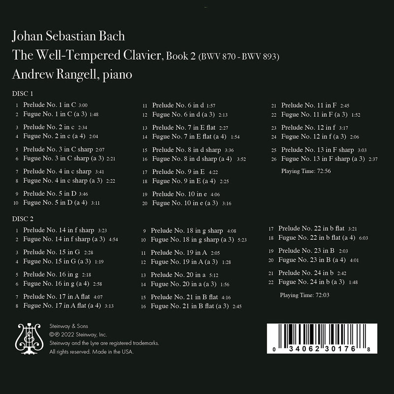 Steinway & SonsBach: The Well-Tempered Clavier, Book 2 / RangellPianist Andrew Rangell's debut recording—released thirty years ago—featured Bach's Goldberg Variations, F-sharp minor toccata, and the two Ricercares from "A Musical Offering"....